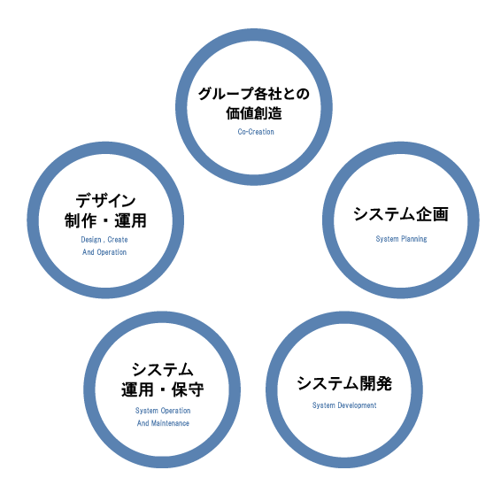 サービス、システム概要検討をグループ各社の立場で実施します。